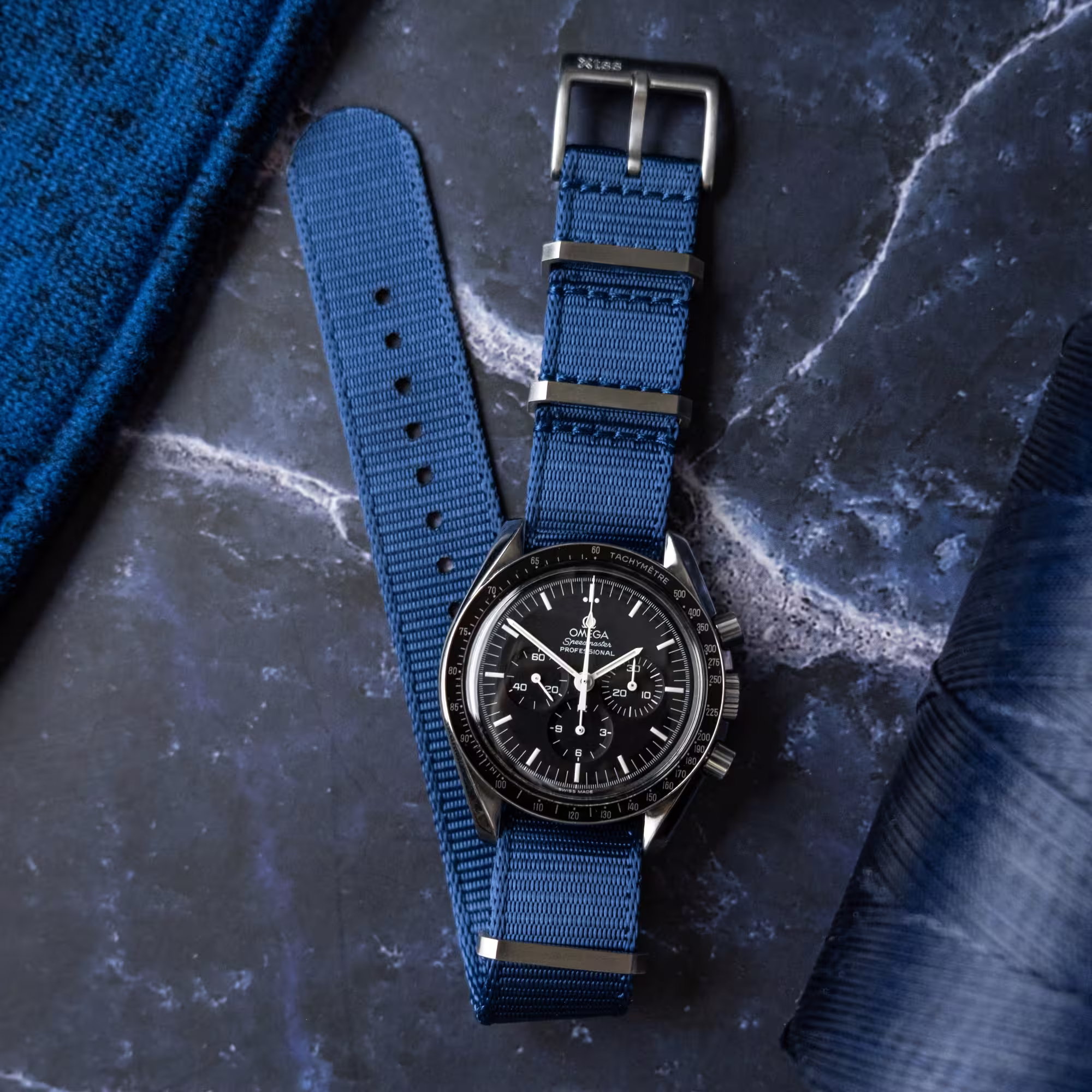 Blue Nylon Military kaiš za sat napravljen je od najkvalitetnijeg najlonskog vlakna velike čvrstoće, korišćenog u izradi sigurnosnih pojaseva. Opremljen je vrhunskom brušenom nerđajućom čeličnom kopčom i drugim metalnim delovima. Najlon je reflektujući i lepo se igra sa svetlom, a ujedno je mekan i prijatan na dodir. Zahvaljujući tome, kaiš je izuzetno udoban pri nošenju, a istovremeno jak i izdržljiv.