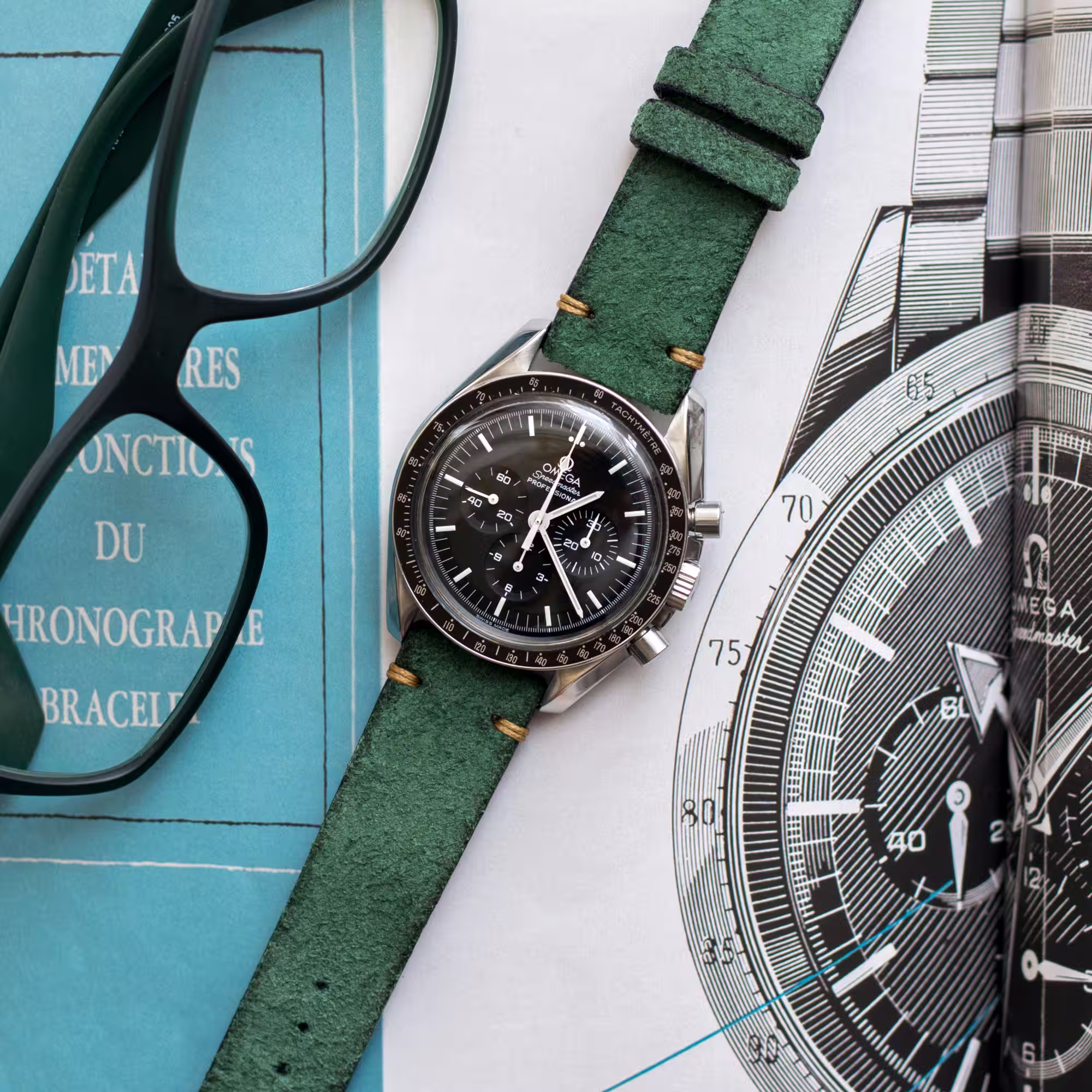 Two-Stitch Green Reversed kožni kaiš za sat